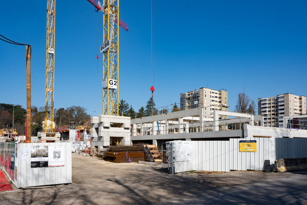 Après le réaménagement des squares Samira Bellil et de la Diversité en 2024, et après la démolition partielle de la barre 550 en 2025, les travaux se poursuivent sur les bâtiments : constructions neuves sur les terrains des ex-barres 520-530, requalifications et démolitions partielles.