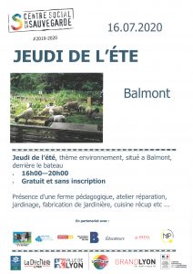 Les jeudis de l’été sont initiés par le centre social de la Sauvegarde avec le soutien de la Mission Duchère, la commission développement durable, le centre social Plateau, la MJC, le foyer protestant, la maison de l’enfance, les éducateurs de prévention, la bibliothèque, le conseil citoyen, et les compagnies Hallet-Eghayan et Le Lien théâtre.