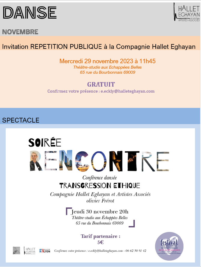 Conférence dansée sur la Transgression Éthique 29 et 30 nov