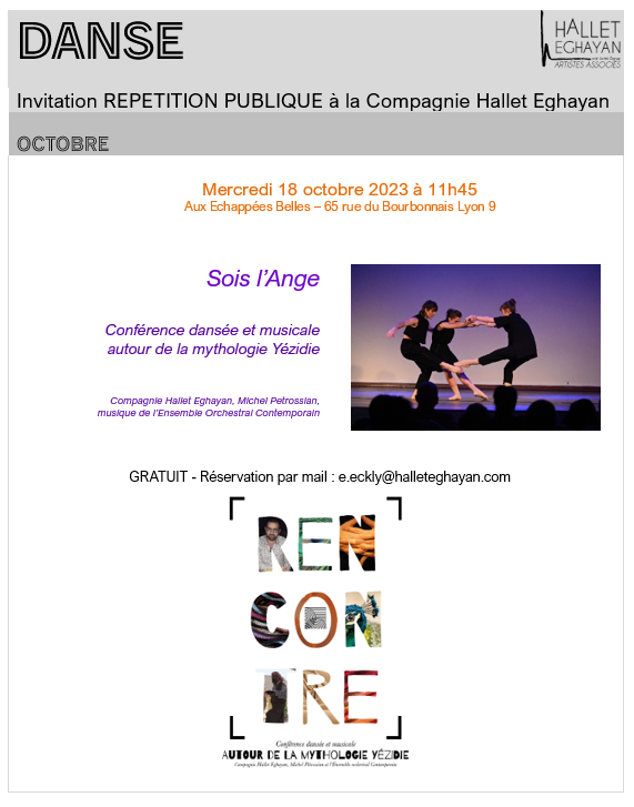 Répétition Publique du specatcle de danse SOIS L’ANGE avec la Compagnie Hallet Eghayan – Texte Michel Petrossian – Musiques de l’Ensemble Orchestral Contemporain