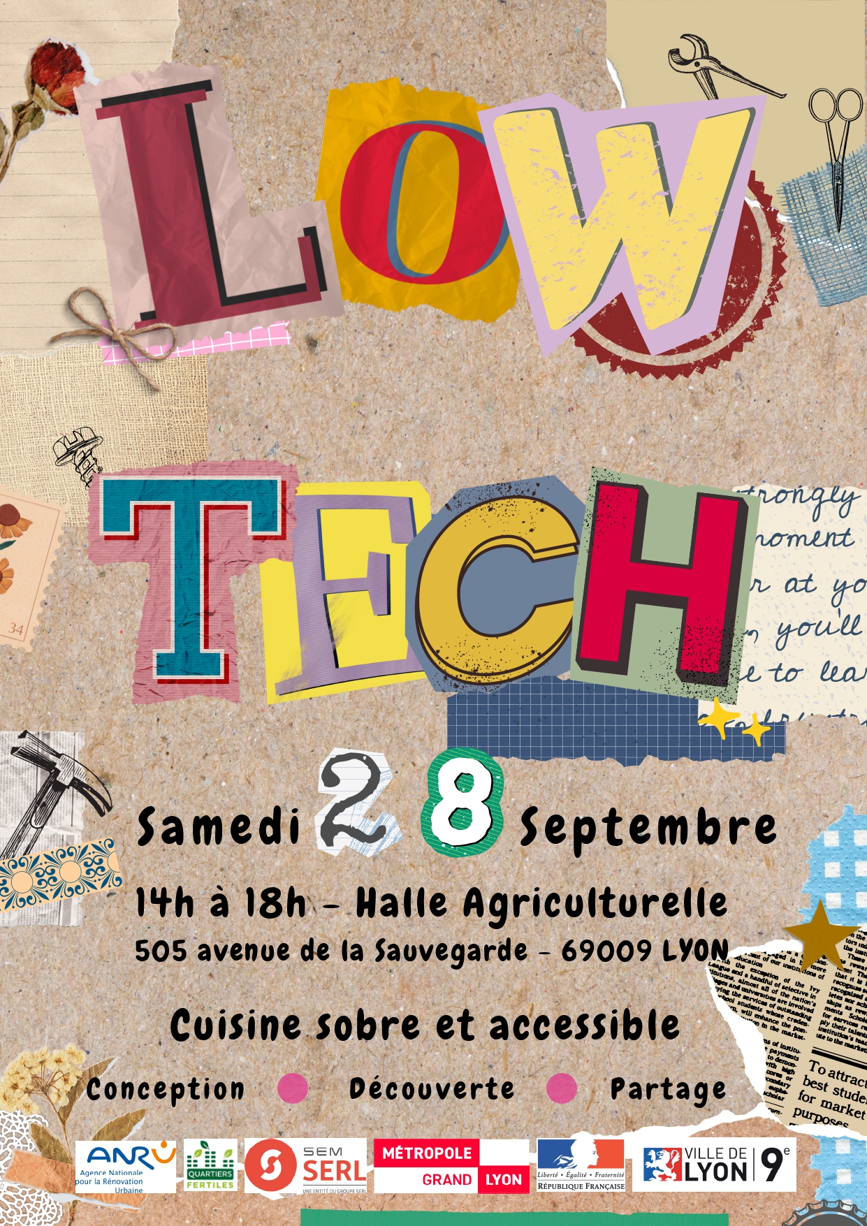 Le samedi 28 septembre, la Mairie du 9e arrondissement et les acteurs.rices de la Duchère vous proposent une journée autour des Low Tech appliquées à la cuisine et à l’alimentation. Les Low tech désignent une catégorie de techniques durables, simples, appropriables et résilientes.