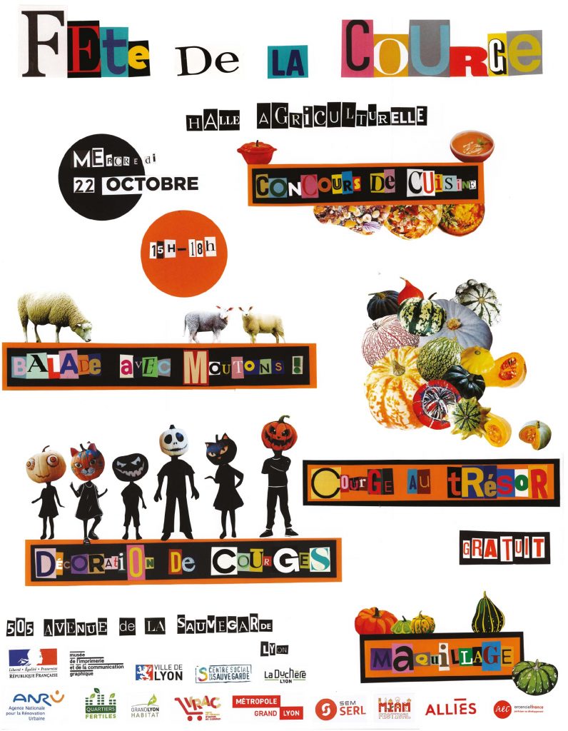 Le mercredi 22 octobre de 15h à 18h, rendez-vous à la Halle agriculturelle pour la 2ᵉ Fête de la Courge à la Halle Agriculturelle, dans le cadre du MIAM Festival de la Métropole de Lyon.