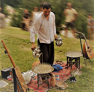 Tout au long du spectacle Abdellatif Targhaoui votre guide prépare le traditionnel thé à la menthe que vous pourrez déguster à la fin du voyage. Oreilles et papilles se régalent.