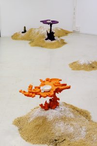 L’exposition présente des sculptures, des céramiques et des peintures à l’huile et explore la relation complexe entre le règne végétal et l’humain.e en s’inspirant du contexte urbain et institutionnel de L’attrape-couleurs.