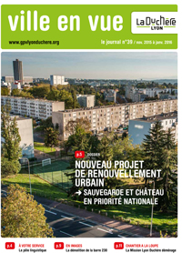 - Ville en vue 39 (nov. 2015 – janv. 2016)Publié le 2 décembre 2015Découvrez le dernier numéro : À VOTRE SERVICE : Le pôle linguistique FIGURE DE QUARTIER : En route vers le conseil citoyen DOSSIER : Sauvegarde et Château en priorité nationale EN IMAGES : La démolition de la « barre des 1000 » ON PARLE DE VOUS : Abdallah Chibi, principal intéressé CHANTIER A LA LOUPE : La démolition du bâtiment de la Mission Lyon Duchère AGENDA Télécharger le numéro
